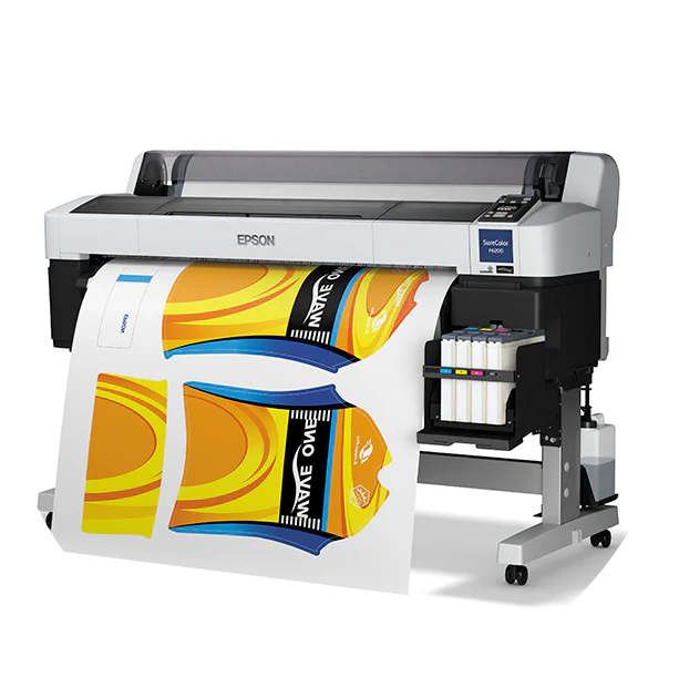 We use Epson wide format sublimation printers to produce sublimation for full coverage shirts to towels to meet your needs.